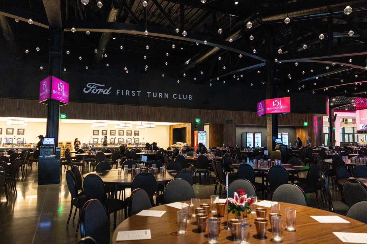 The First Turn Club Dining Room allows guests to enjoy the famous, media-worthy angle of the Kentucky Derby Walkover, where contenders and their connections parade along the track from the barn area to the Paddock prior to the big race. First Turn Club Dining guests can enjoy thunderous racing along the rail of the outdoor terrace directly in front of the dining room.