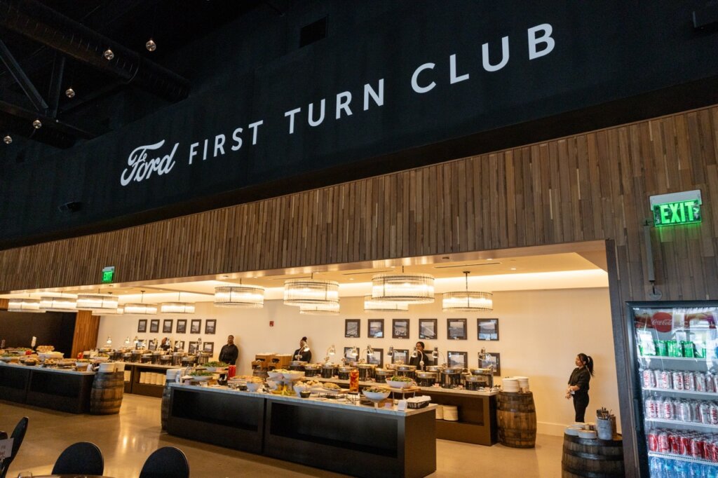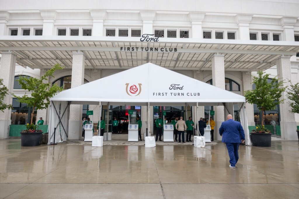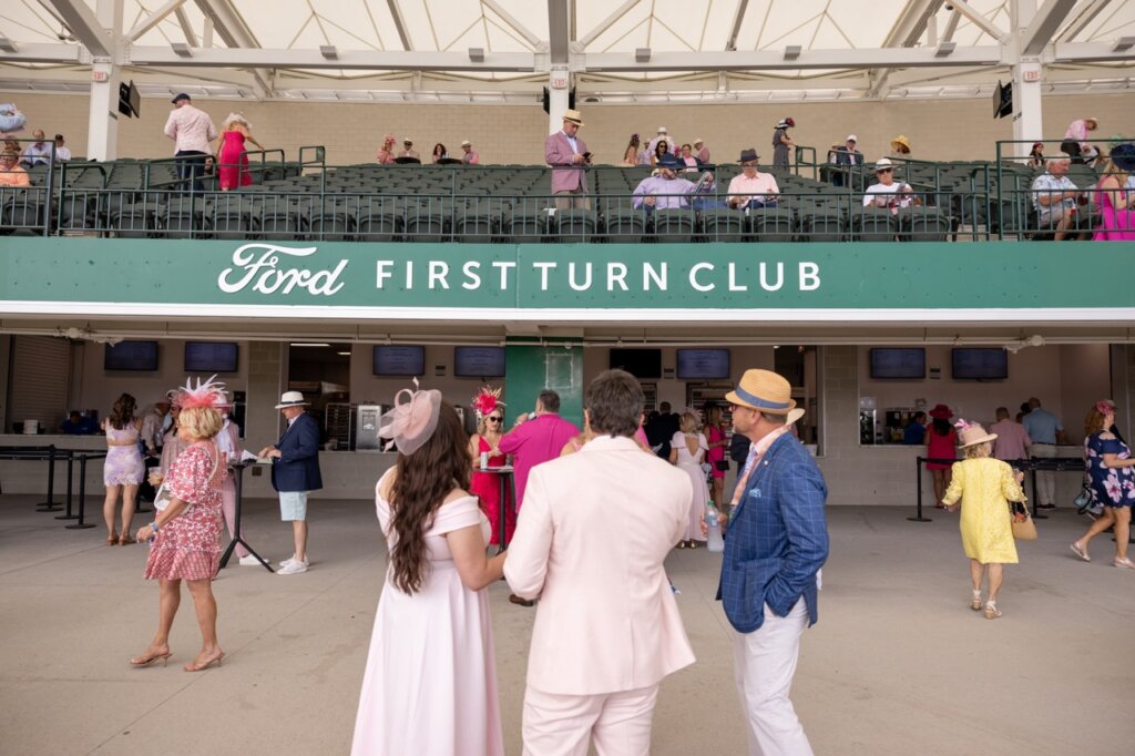 The First Turn Club Dining Room allows guests to enjoy the famous, media-worthy angle of the Kentucky Derby Walkover, where contenders and their connections parade along the track from the barn area to the Paddock prior to the big race. First Turn Club Dining guests can enjoy thunderous racing along the rail of the outdoor terrace directly in front of the dining room.