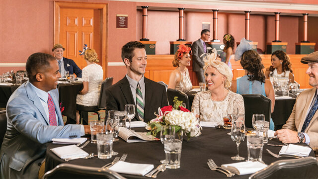 Choose from a number of indoor dining options within the Jockey Club Tower, including the indoor Oaks Room, Derby Room, Grand Foyer, or the Triple Crown Room. The Jockey Club Suites celebrate the excitement behind the sport of horseracing in a casual atmosphere positioned in the homestretch of the racetrack, perched up beside the Twin Spires. The setting makes for fantastic photo opportunities both in the common areas, filled with natural light, and on the balconies, overlooking the Spires and the track.