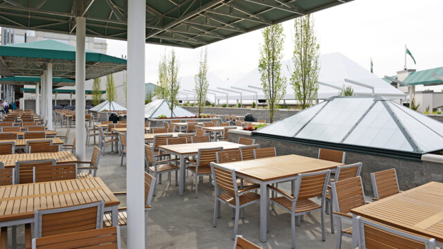 The Wicker Garden is a rooftop lounge space that features foliage and dynamic views near the Starting Gate of the racetrack and of guests arriving on Central Avenue below. Each grouping seats up to 35 guests in a variety of outdoor soft seating.